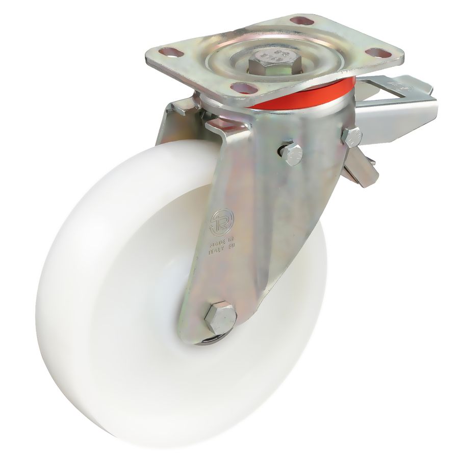 Колесо Tellure Rota 686806 поворотное с тормозом, диаметр 200мм, грузоподъемность 300кг, полиамид
